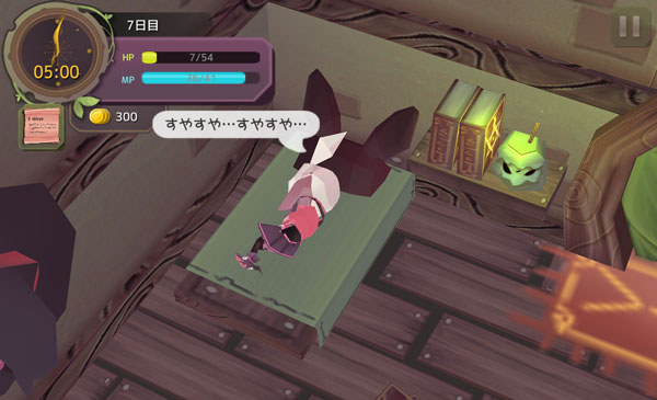 とりあえず防御力をあげたものの、これでウサギに勝てるとは思えない。もうやめだやめだ!寝てしまおう!寝ていれば何か良い考えが思いつくかもしれない。