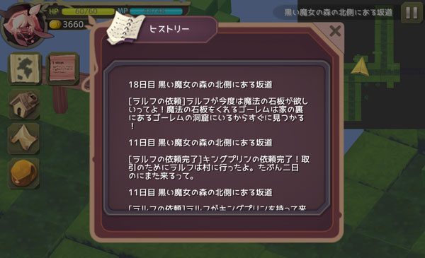 何となくゲームのシステムが分かってきたぞ。ラルフの依頼を聞けば行動範囲が広がるんだな。多くのライオンがいたところも依頼を聞けば侵入できるに違いない。次回は裏山ゴーレムの洞窟を探索します!