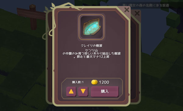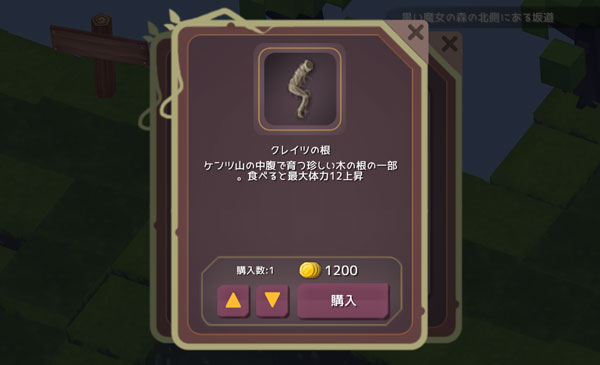 HP、MP、魔力を強化するアイテムを買いました。魔力は訓練でガンガン上がるからHPを上昇させるクレイツの根を2つ買った方が良かったかもね。