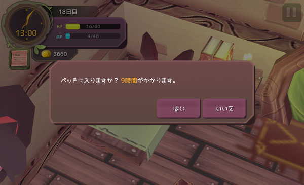 昨日はウサギやアルフレドと戦って疲れた。睡眠をとって疲労を回復させますね。それじゃあ、お休みなさーい!