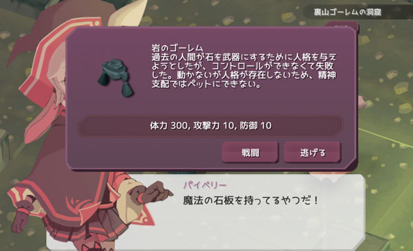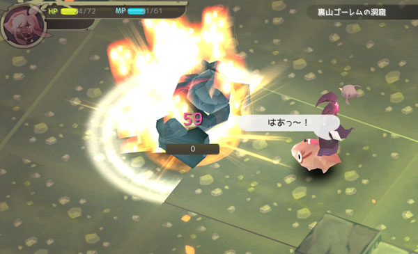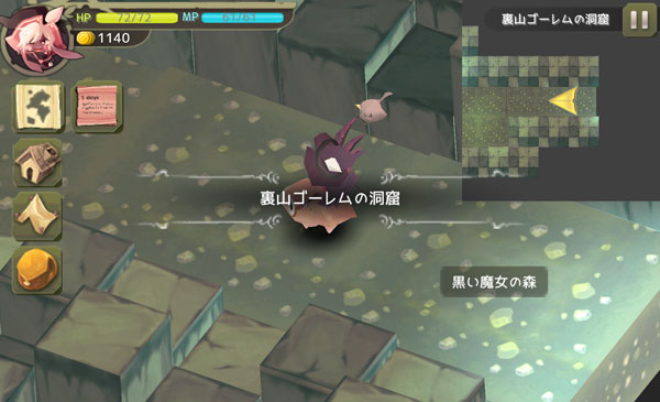 疲労度が低いうちに強い敵を倒しましょう。まずは裏山ゴーレムの洞窟から探索をするのです。