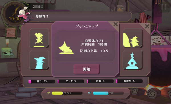 余っている体力とマナを使い切って睡眠をとりましょう。プッシアップとメディテーションを実行します。