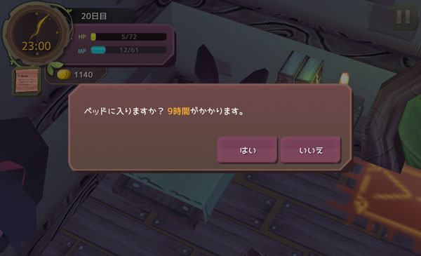 裏山ゴーレムの洞窟を探索したら疲れた。明日に備えて睡眠をとろうか。夜更かしをすると明日に響くからね。パイベリーは寝つきが良くて羨ましい。