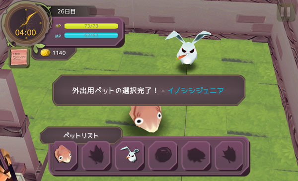 ウサギの肉を取りに南島へ向かいます。もうHPがないからウサギを捕るのも命がけだけどね。今回のプレイ日記はここまで!次回はパイベリーの魔法が強くなります!