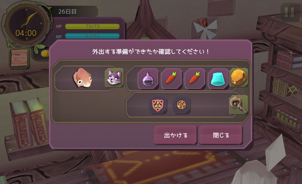 あとはアイテムを用意すれば外出の準備は終わる。しかし、HPを回復させるアイテムが残っていないのです。前々回のライオン戦にて使い切ってしまったあ。