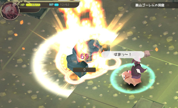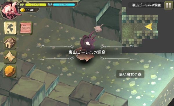 岩ゴーレムを倒して次のダンジョンへ行きましょうか。こいつは体力が高くて素早いですが攻撃力は低い。イノシシジュニアを使ってサクッと倒します。