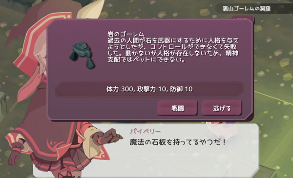新しく文様を合成できるようになったから岩ゴーレムを倒しにいきます。石版は何枚あっても足りないくらいだよ。外出する度に倒すハメになるだろう。