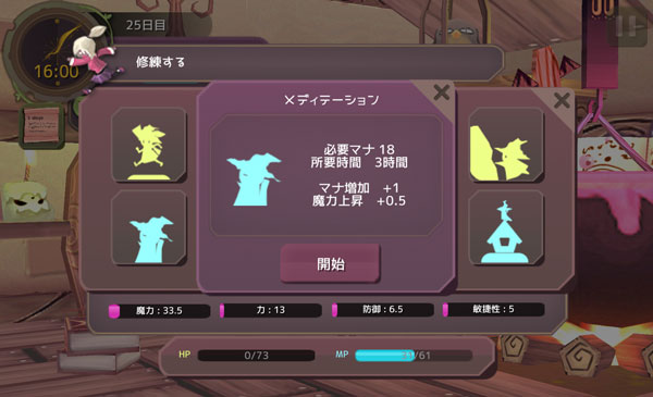 実行できる訓練はメディテーションだけです。魔力を上げるのは悪くないだろう。寝る前に修練をやろうか!