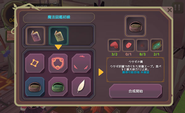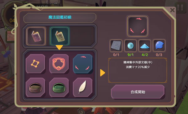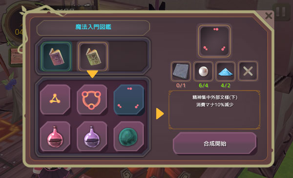 こんにちは!魔女の泉のプレイ日記を始めます!今回は魔法文様や回復アイテムの素材を集めよう。どうやら次にラルフが来るのは29日目らしいから。