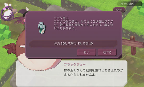なんか強そうな勇士と遭遇をした。人間に会うためにララク村へ行くのに人間と戦うのはまずい。