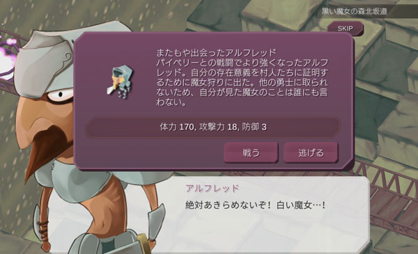 アルフレッドを撃破しました。イベント会話は省略をしています。パイベリーの毒舌が面白かったよ。