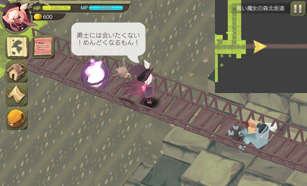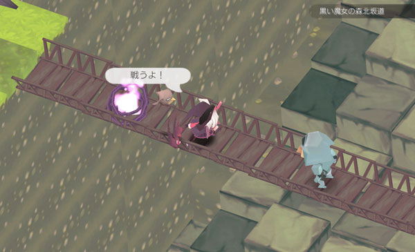こんにちは!魔女の泉のプレイ日記を始めます!ストーリーを進めるために橋を渡ってララク村へ向かいます。なんだか見覚えのある勇士が立ちはだかっているね。