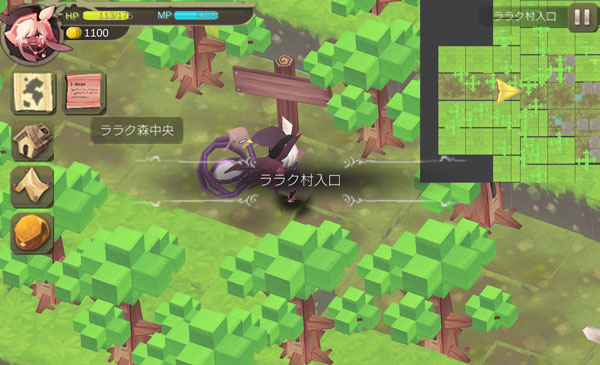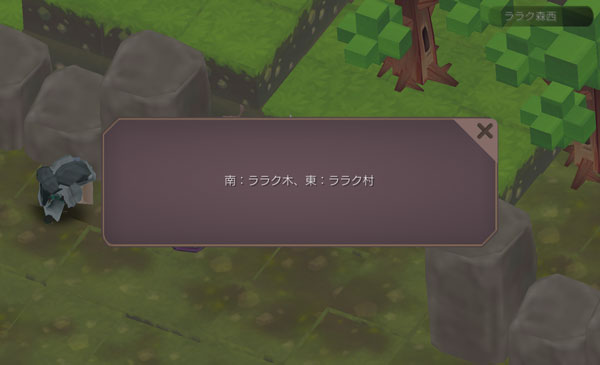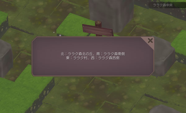 東に進みララク森中央に来ました。なんだか道が迷路みたいで混乱をしてきたよ。困ったことになったなあ。
