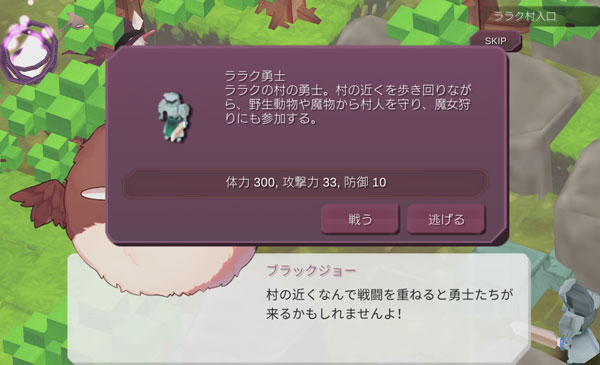 ララク勇士を倒してもペナルティは無いようだ。2人目の勇士も倒しちゃおう。そして村人と話し合いたい。悪い魔女じゃないって信じてもらえるはず!