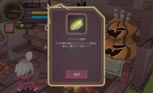 クラレイツ樹液が完成しました!これで戦闘中に何度も強力な魔法を唱えられる。それに消費マナの少ない魔法だけ使用していればMP回復のアイテムを温存できます!