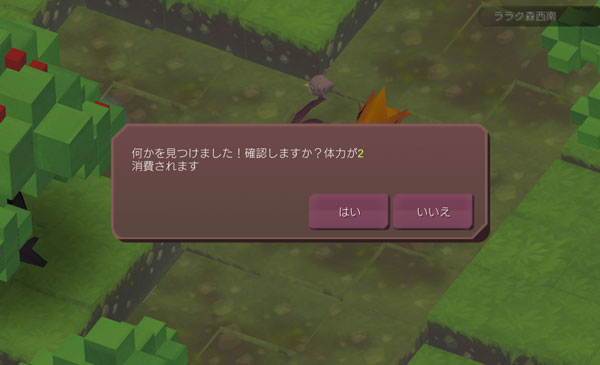 前回のイベント(クリーチャーを燃やした)が発生したララク森西南に着きました。木の近くでアイテムが落ちていたはずです。