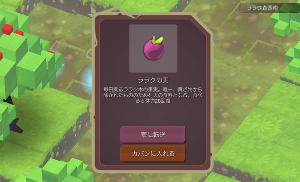 赤い実が綺麗で美味しそうですね。他にアイテムは落ちていないみたい。別の場所を探索しようか。