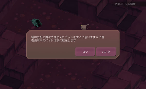 クリティカルが出ると倒して精神支配できないから慎重に体力を削ります。なんとかペット化に成功。こちらの体力も減らされたけどね。