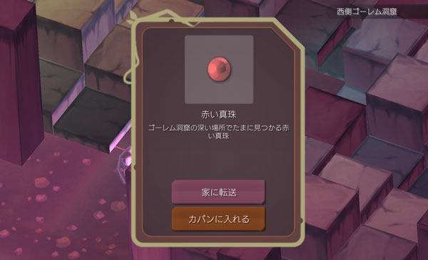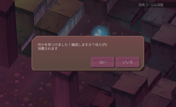 道ばたにアイテムが落ちていました。この洞窟では何を採取できるんだろうね。調べてみましょう。