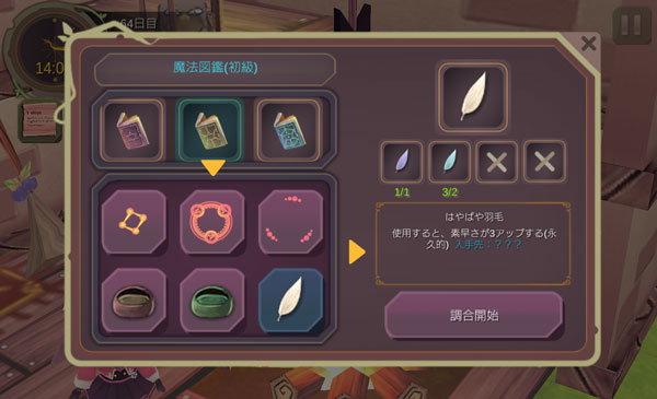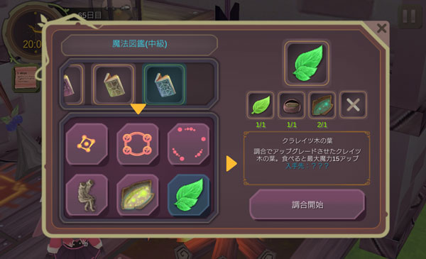素材を回収してドーピングアイテムを強化できるようになりました。今回は魔力の上がるクラレイツ木の葉を作ろうかな。最大マナを増やしてもたかがしれている。それならば魔力を強化して消費マナの少ない魔法で敵を倒せるようになりたい。
