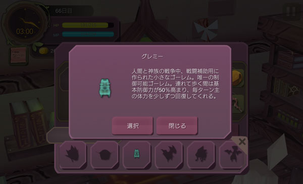 んん!?グレミーって誰だっけ?ああ、西側ゴーレムの洞窟でペットにしたゴーレムか。守備を上げたり少しずつ回復をしてくれる能力があるらしい。ライティングベルが役立たずだったから連れて行こうか。