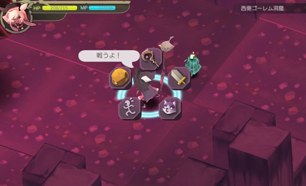 この洞窟のボスである闇ゴーレムの元へたどり着いたパイベリー。1400ものHPを削るのは無理だ。マナがいくつあっても足りないでしょう(泣)。