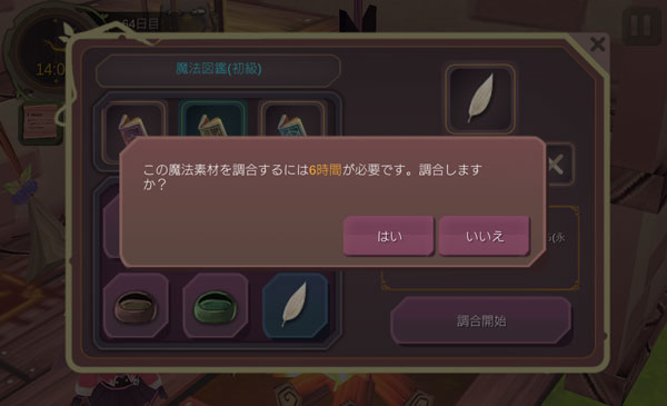 はやばや羽毛の合成には6時間かかるのか。いやしかし、もう残り時間を気にするのはやめよう。作成をしてパイベリーに使用します。
