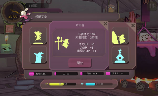 素早さが強化をされて18になりました!だが疲労74は酷いですね。ちょっとだけ修練をして休息を取りましょう。