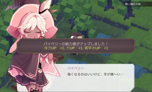 睡眠をとってパイベリーが元気になりました!今のままエリシオン平原に行っても逃げ帰ってくることになりそう。パイベリーを強化しましょうか。