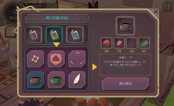 栄養スープを1つ作ってドーピングアイテムを強化しよう。何個も作る余裕はありません(ゲームが終わるから)。1つ作るくらいは大丈夫かな。