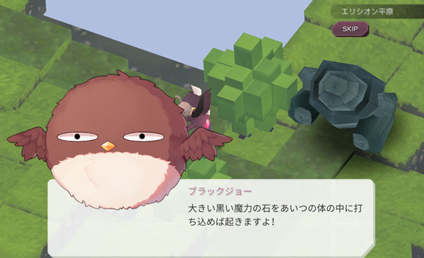 助言どおりゴーレムに魔力の石を打ち込みます。ブックジョーが反抗的なセリフを呟いているね。お前がパイベリーを持って飛び越えれば西側ゴーレム洞窟へ行かなくてもすんだのに。