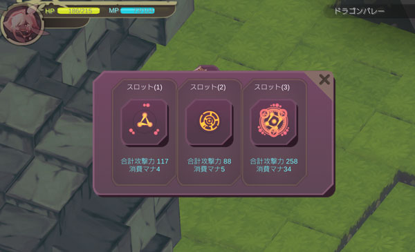 どう考えても威力が足らない。しかし、スロット3の魔法は消費マナ34だしなあ。やっぱりチクチク削るしかないね。