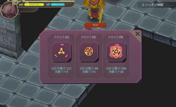 ドラゴンの攻撃は3ターンに1度だったから弱い魔法だけでも勝てました。しかし、こいつは毎ターン攻撃してくるだろうから威力の高い魔法を使うしかありません。スロット3の魔法を詠唱します!