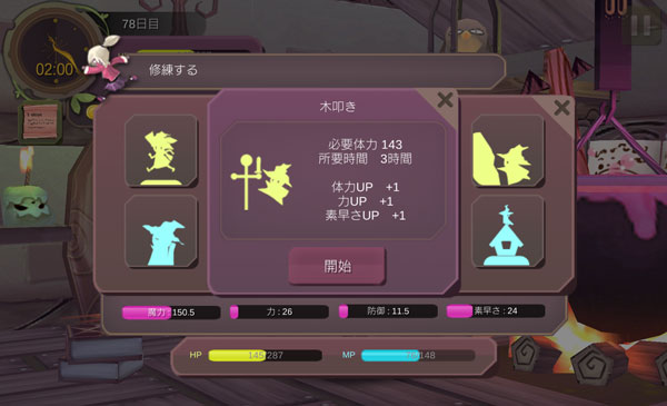 こんにちは!魔女の泉のプレイ日記を始めます!次の目的地はイノシシ平原の北にあるデュラック神殿。魔力とスピードを強化して攻略の準備は整いました。しかし、残りの日数は22日しかありません。モンスターに負けて帰還をしたらクリアは不可能になります。無敗のまま突き進んでも時間が足りるのかは不明(泣)。
