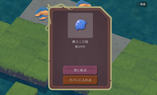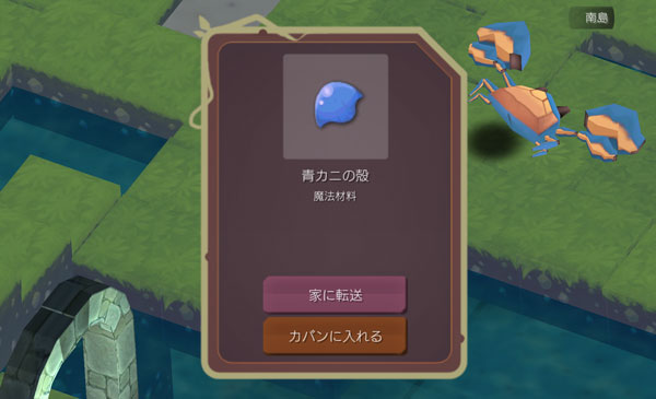 青いカニは南島にいます。久しぶりにアルア神殿へワープをしましょう。南島は重要な素材が多かったね。思い出深い土地になってしまった。