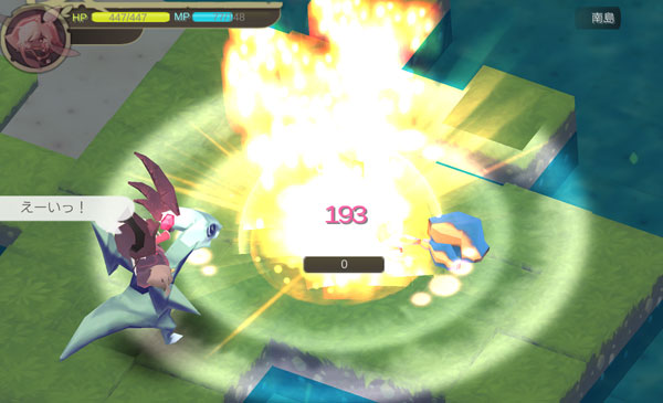 炎のエフェクトと海の色が合わさって綺麗。カメを捕獲する時もこんな感じになるんだよね。これで合成に必要な殻は集まったのかな?