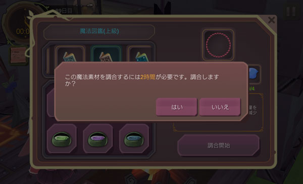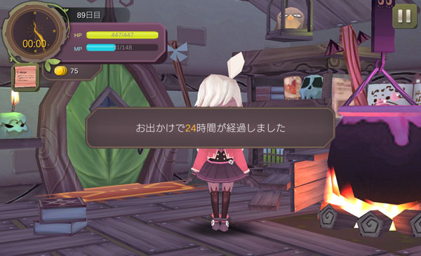 なんと外出により24時間もかかったでござる。たかが素材を4つ集めただけで24時間かあ。戦闘は多くの時間を消費するんだろうね。