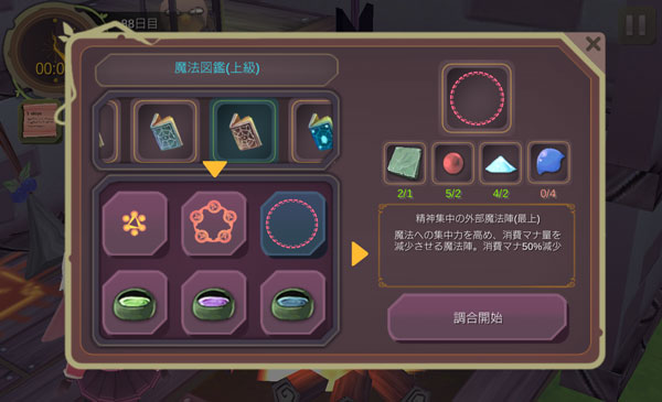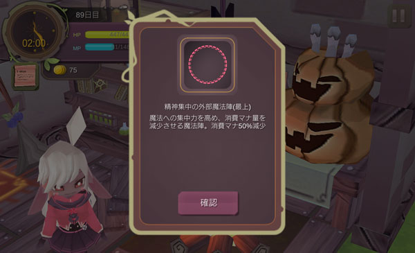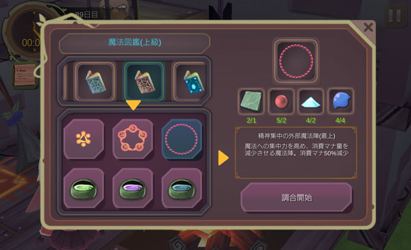 『五球地点爆発の中央魔法陣』の消費マナを半分に抑える作戦も悪くはない。早く青カニの殻を集めて最終戦の魔法陣を決断しよう。