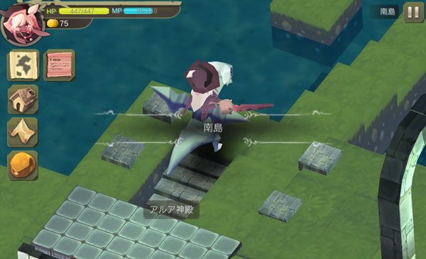 2匹目のカニを倒しました。他のダンジョンへ移動をすると敵が復活するようなので、いったんアルア神殿へ戻ります。
