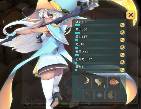 前作にあった『疲労』の値が無い。制限時間についての説明もなかった。各能力の最大値は数百と高そうだ。もしかして時間を気にせずルナをレベリングできるの?次回はルアレツを作りまくります。