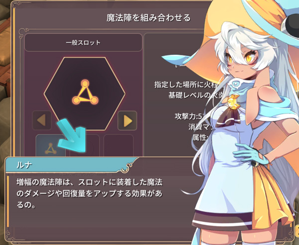 『増幅の魔法陣』は前作と同じく効果を増加させる魔法陣なのだろう。スロットに1種類だけ入れられます。