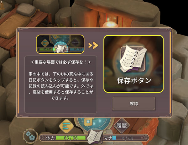 魔法陣の説明は以上で終わり。複雑そうだが特徴を5くらい覚えるだけです。セーブロードのコマンドについてヒントが表示をされました。キャプチャを失敗した時のためにセーブしておこうぜ。